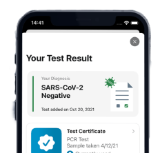 Nach 15 Minuten erhalten Sie Ihr Schnelltest-Zertifikat ganz einfach per E-Mail. Gern drucken wir die Ergebnisse für Sie auch aus.